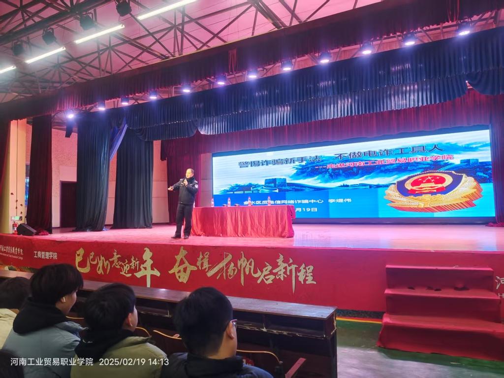 为进一步提高学生防范电信网络诈骗意识,筑牢校园安全防线,2月19日,金水区反电信网络诈骗中心走进优胜校区,为师生们带来了一场精彩生动的反诈宣传讲座。