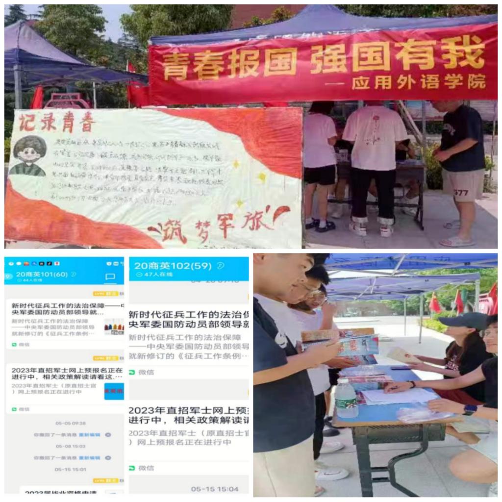 为激发学生关心国防、热爱国防、保卫国防的政治热情,引导学生以青春热情报效伟大祖国,5月8日-15日我校分别在优胜校区和龙湖校区进行征兵政策进班宣讲活动,也是国防教育宣传周的预热活动。通过张贴宣传海报、讲解征兵政策、解答学生疑惑、国旗下讲话等形式,鼓励大家筑梦军旅,以戎装书写青春,充分调动起学生的参军热情。
