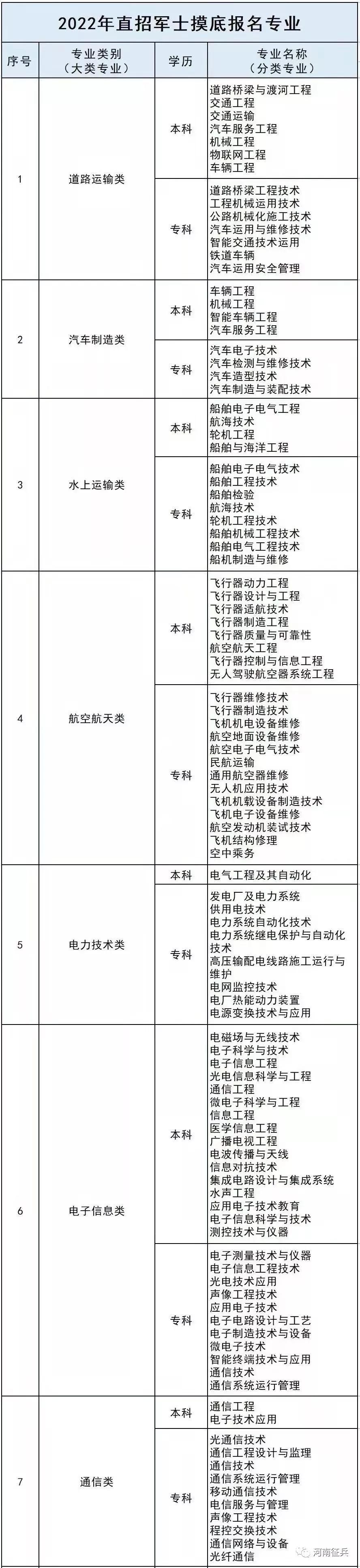 经初步统计,2022年直招军士涉及道路运输、汽车制造、电子信息、通信、计算机、机电设备、机械、医药等400余个军民通用专业。