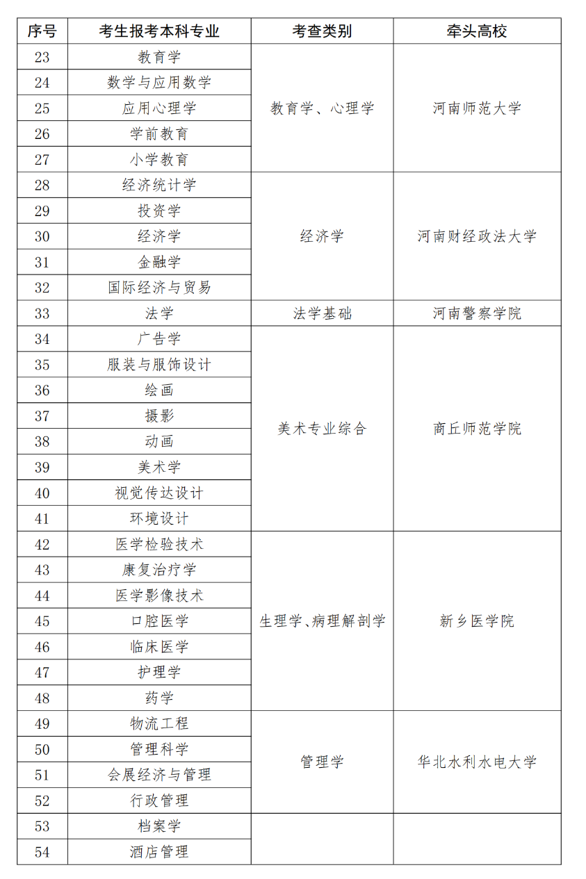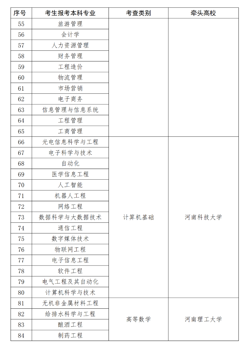 附件:河南省退役大学生士兵专升本综合考查牵头高校名单