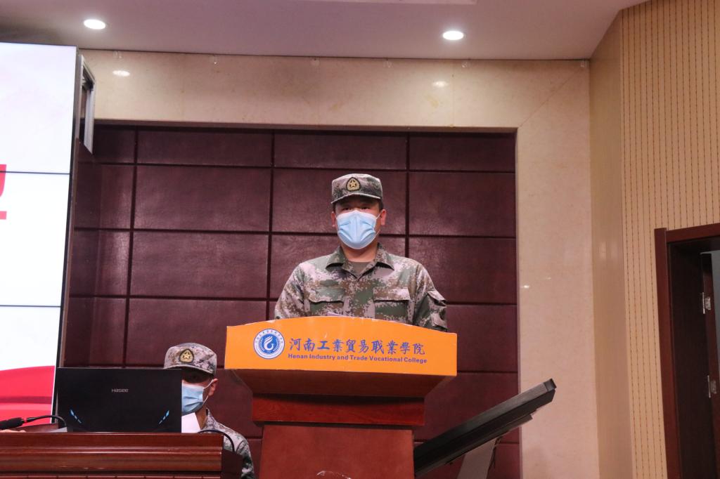 仪式伊始,张燕斐说:“今天,我们在这里隆重举行国旗护卫队新队员入队仪式,你们中的39位同学将正式成为河南工业贸易职业学院第十三届国旗护卫队队员。在此,我谨代表学校向你们表示最热烈的祝贺,也向即将退役的老一届队员表示深深的感谢!国旗是一个国家的象征,也是一个民族的骄傲。国旗带给人们的不仅仅是荣耀,更多的是爱国情结。国旗对于国旗护卫队的意义不只是一份信仰,更是一种传承。”她说,本次活动是正式欢迎新队员加入国旗护卫队这个大家庭,坚持以护卫国旗为使命,以弘扬爱国主义精神为己任,将“国护精神”传承下去,以饱满热情投入到队伍之中,并希望同学们能够树立政治目标和远大理想,无论是学习还是品德修养,都要以最高标准要求自己,要有足够的自信,不仅个子高,还要学业高、品行高、纪律强,树立标杆意识、争做先锋模范。
