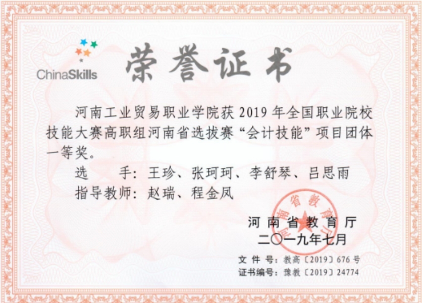 2.2019年省赛一等奖:“会计技能”赛项