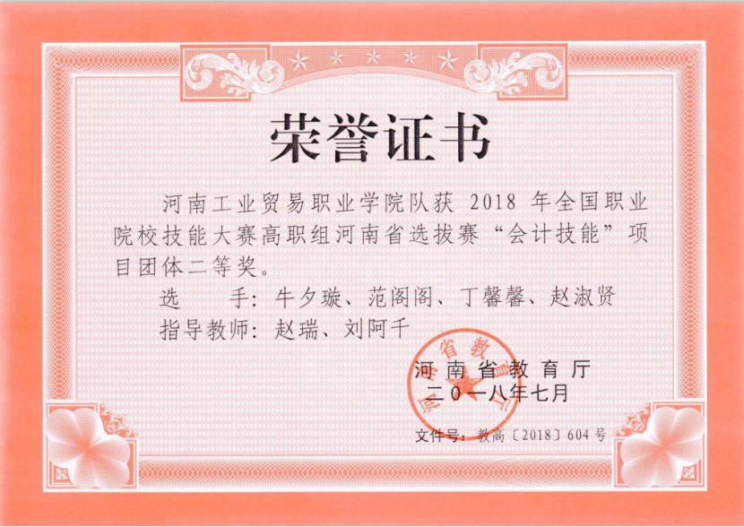 1.2018年省赛二等奖:“会计技能”赛项