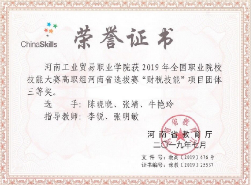 2.2019年省赛三等奖:“财税技能”赛项
