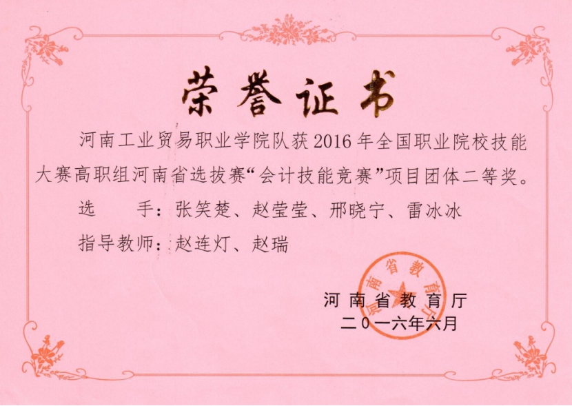 3.2016年省赛二等奖:“会计技能”赛项