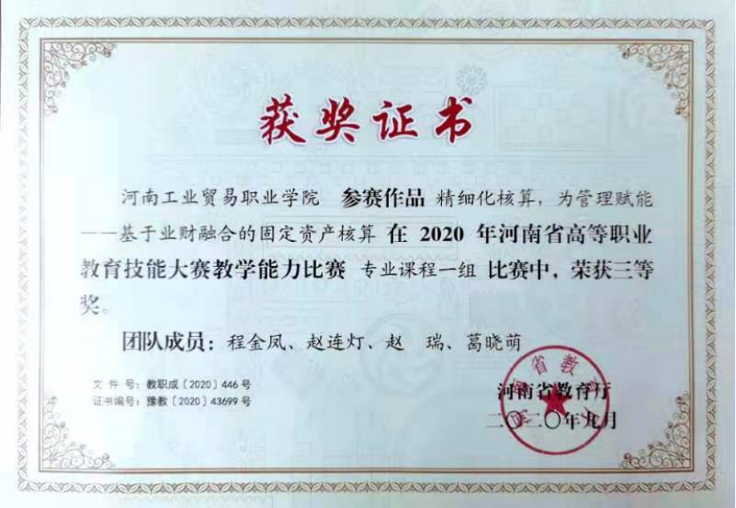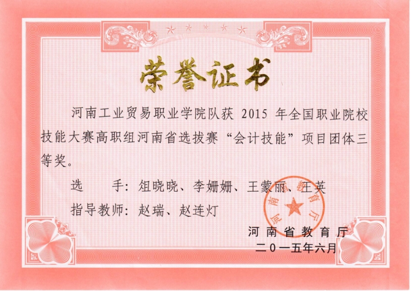 1.2015年省赛三等奖:“会计技能”赛项