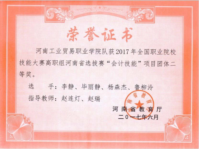 2.2017年省赛二等奖:“会计技能”赛项