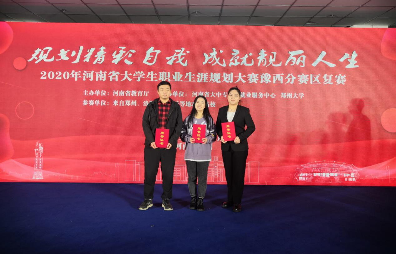 2020年11月20日-21日,河南省大学生职业生涯大赛豫西分赛区竞赛在郑州大学举行,来自31所高校的85名大学生展开了激烈的角逐。河南工业贸易职业学院共派出3名学生参加,其中,财务会计系由葛晓萌老师、李锐老师指导的曹圆圆获得河南省大学生职业生涯规划大赛豫西赛区三等奖的好成绩。