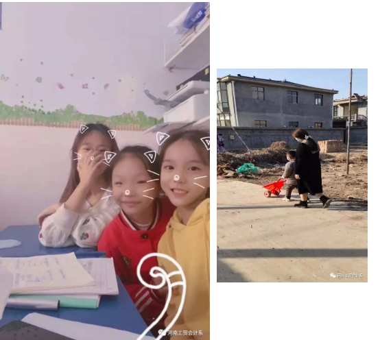 20会电102团支部李文静、曹硕、20注会101团支部齐文红、20注会104团支部陈小阳四位同学热心陪伴身边的留守儿童,用实际行动去照亮孩子们的内心,把爱心和温暖送到他们的内心深处。“艰辛知人生,实践长才干”,通过关爱留守儿童的实践活动,同学们逐步了解了社会,开阔了视野,也明白了一个共青团员应当担当的社会责任。