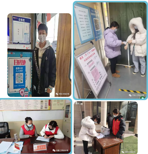 其中20注会101团支部付好致、郭梦圆、20会电105团支部曹怡欣、孔海宁四位同学坚持每日对社区进出人口进行体温测量,按时进行消毒,统计每天的进出口人群信息,在服务家乡,助力疫情疫情防控中锻炼成长。