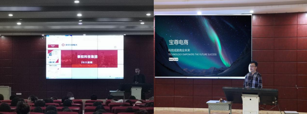 本次招聘会邀请到规模较大、管理规范、发展前景较好的泰和科技集团和宝尊电商公司。招聘会上,泰和科技集团和宝尊电商的招聘负责人通过发放公司宣传单页、面对面交流,建立微信群等方式,针对同学们感兴趣的招聘岗位要求、薪资待遇、个人发展前景等问题与同学们进行了深入全面的沟通解答。同学们踊跃参与、提前了解就业市场需求和就业发展前景,为下一步走出校园、走向社会做好准备。