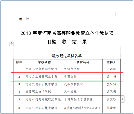 根据河南省教育厅《关于公布2018年度高等职业教育立体化教材项目验收结果的通知(教职成〔2019〕822号)》,财务会计系吕琳副教授主持,李锐老师主要负责,程金凤、郑俊梅、王婧、韩琦霏、张明敏、崔靖、郭丽洁等老师参加的《管理会计》立体化教材建设项目顺利通过网评和会评专家验收,立体化资源建设成果获得专家高度评价。《管理会计》立体化教材由河南科学技术出版社出版,教材充分体现高等职业教育的特点,内容紧扣财政部管理会计基本指引和应用指引框架,整体结构和内容符合管理会计发展前沿方向,并符合高职学生学习情况和要求。教材配套有各类微课资源、例题配套Excel模型、Excel高级模型拓展资源、网页版Exce Power BI本量利模型等立体化资源,可直接手机扫描使用,充分利用移动终端设备为教材使用者提供优质的学习内容,能够满足不同层次学习人员的需求。