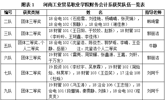 由全国金融职业教育教学指导委员会主办“2020年全国金融与证券投资模拟实训大赛”圆满落幕,河南工业贸易职业学院财务会计系派出6支代表队,由李锐老师领队,刘阿千老师总指挥,韩琦霏老师、郭丽洁老师、牛静老师作为指导老师,带领8支代表队,在线上与556所高校,4833支队伍进行角逐。