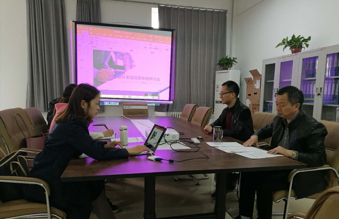 3月28日下午,财务会计系在校企合作工作室召开2019年度高职院校项目库申报专题会议,安排部署建立高等职业教育项目库工作。会计系主任谢桦教授出席并主持,教研室主任李锐、赵瑞、程金凤老师和实训中心主任刘阿千老师参加了会议。