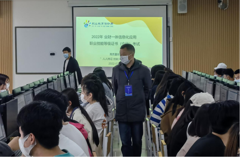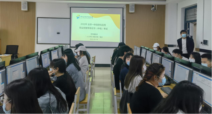 为落实教育部1+X证书制度考试工作,高质量推进“人人持证、技能河南”建设目标,5月14日,财务会计学院开展了全国“1+X业财一体信息化应用(中级)”职业技能等级证书考试。谢桦院长、赵瑞副院长担任巡考,20级大数据与财务管理专业160位学生参加了考试。本次考试严格遵守学校疫情防控制度,考务人员尽职履责,考场纪律严明,考试圆满完成。