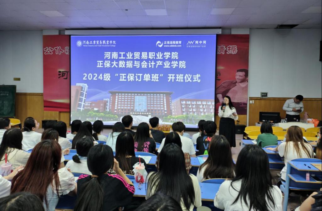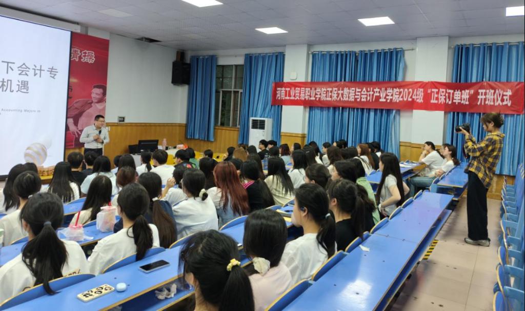 为深化产教融合、创新人才培养模式,推动大数据与会计专业数字化升级改造,我院正保大数据与会计产业学院2024级“正保订单班”开班仪式在优胜校区4201教室隆重举行。会计教研室主任梁一村、厦门网中网软件有限公司大区经理季金及订单班全体师生参加本次开班仪式,共同开启校企协同育人的新篇章。