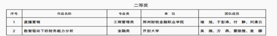 近日,由河南省教育厅主办的2023年河南省高等职业教育教学能力大赛决赛成绩公布,我院程金凤、王萌、葛晓萌、梁一村团队的作品《基于投资者视角的大数据财务分析》荣获二等奖,实现我院在此项赛事中的新突破。