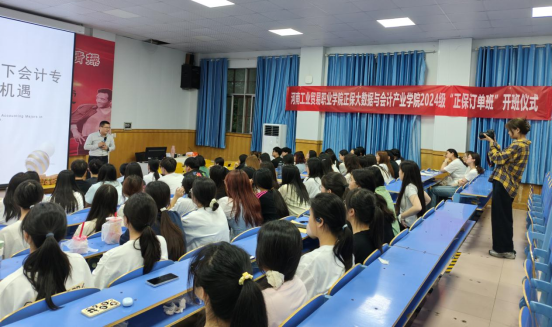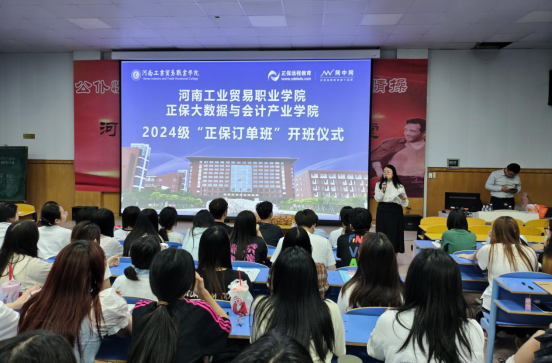 为深化产教融合、创新人才培养模式,推动大数据与会计专业数字化升级改造,4月17日,我院正保大数据与会计产业学院2024级“正保订单班”开班仪式在优胜校区4201教室隆重举行。会计教研室主任梁一村、厦门网中网软件有限公司大区经理季金及订单班全体师生参加本次开班仪式,共同开启校企协同育人的新篇章。