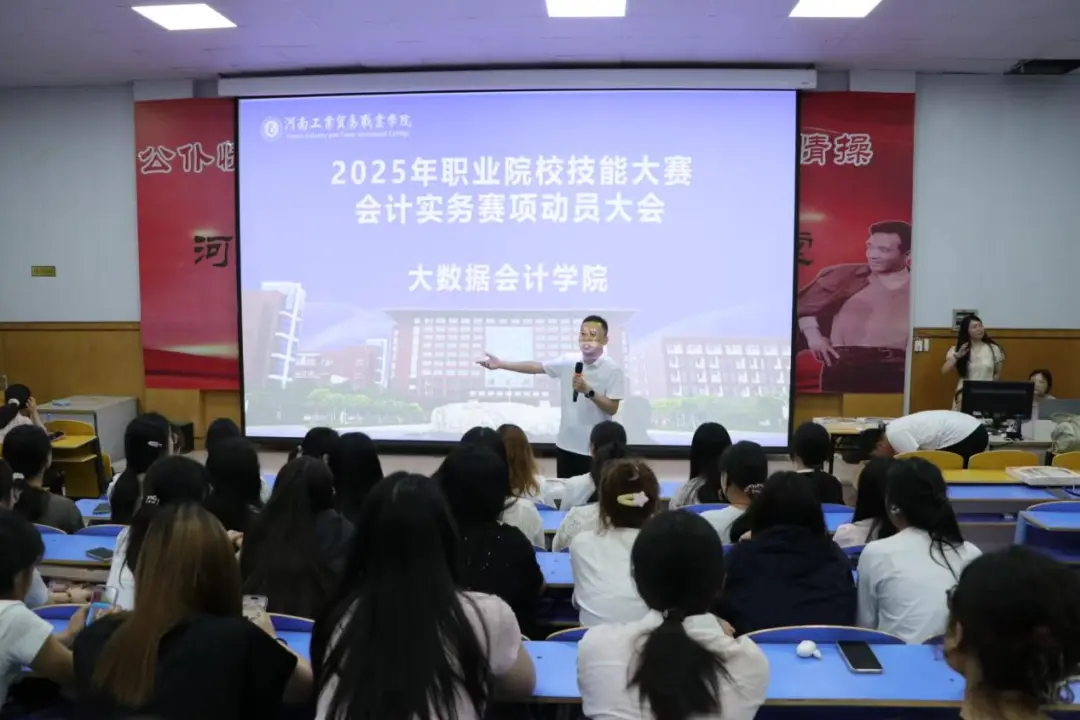 为贯彻落实《国家职业教育改革实施方案》等文件精神,秉承“坚持以学生发展为中心,以就业为导向”的理念,鼓励学生不断突破自我,增强职业素养,积极推动财会人才数字化转型,6月19日,大数据会计学院在优胜校区4201教室举办2025年技能大赛会计实务赛项动员大会。学院2024级各专业优秀在校生参加了本次动员大会。