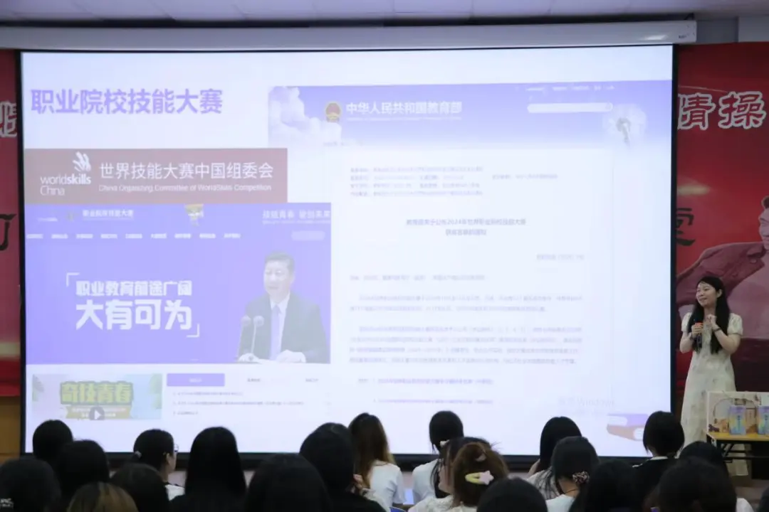 会上,谢靖雯老师从技能大赛赛项规格及赛项设置、参赛知识与技能准备、竞赛成绩与专业成长等方面为同学们介绍了会计实务赛项情况,并向同学们展示了我院曾经获得的荣誉,鼓励大家努力学习、勇攀高峰,在未来的技能大赛中展现自己的风采。