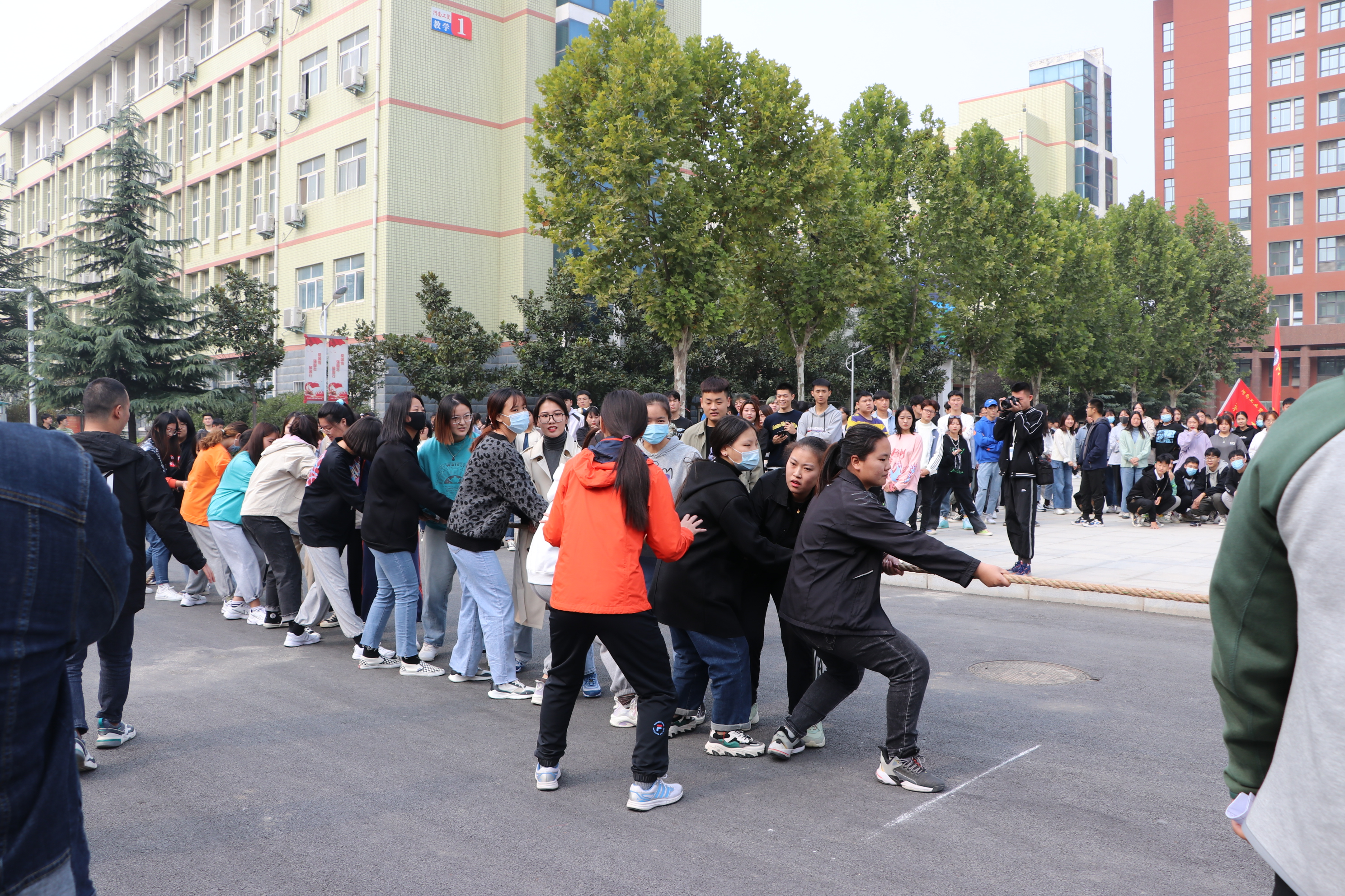 2020年10月30日,我校在红旗广场举办拔河比赛决赛。比赛现场,我系参赛人员手握长绳,憋足了劲拼命往后拉。助威声、呐喊声、加油声此起彼伏。经过激烈的角逐,我系荣获女生组冠军、男生组优秀奖。通过这次比赛,不仅丰富了校园文体生活,营造了积极向上、健康文明的校园氛围,也加强了我系同学之间的相互协作,提高了凝聚力。