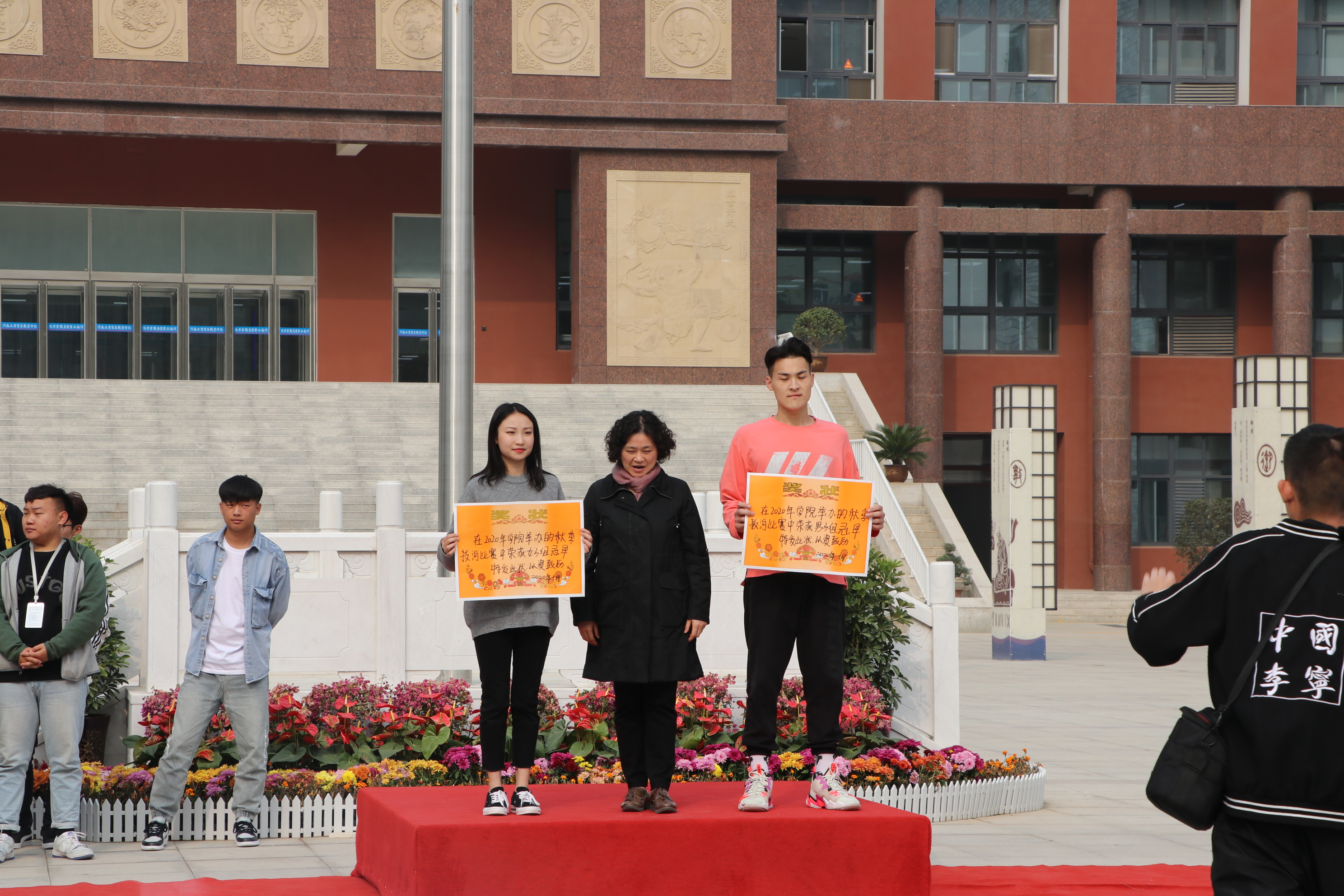 学生代表上台领奖
