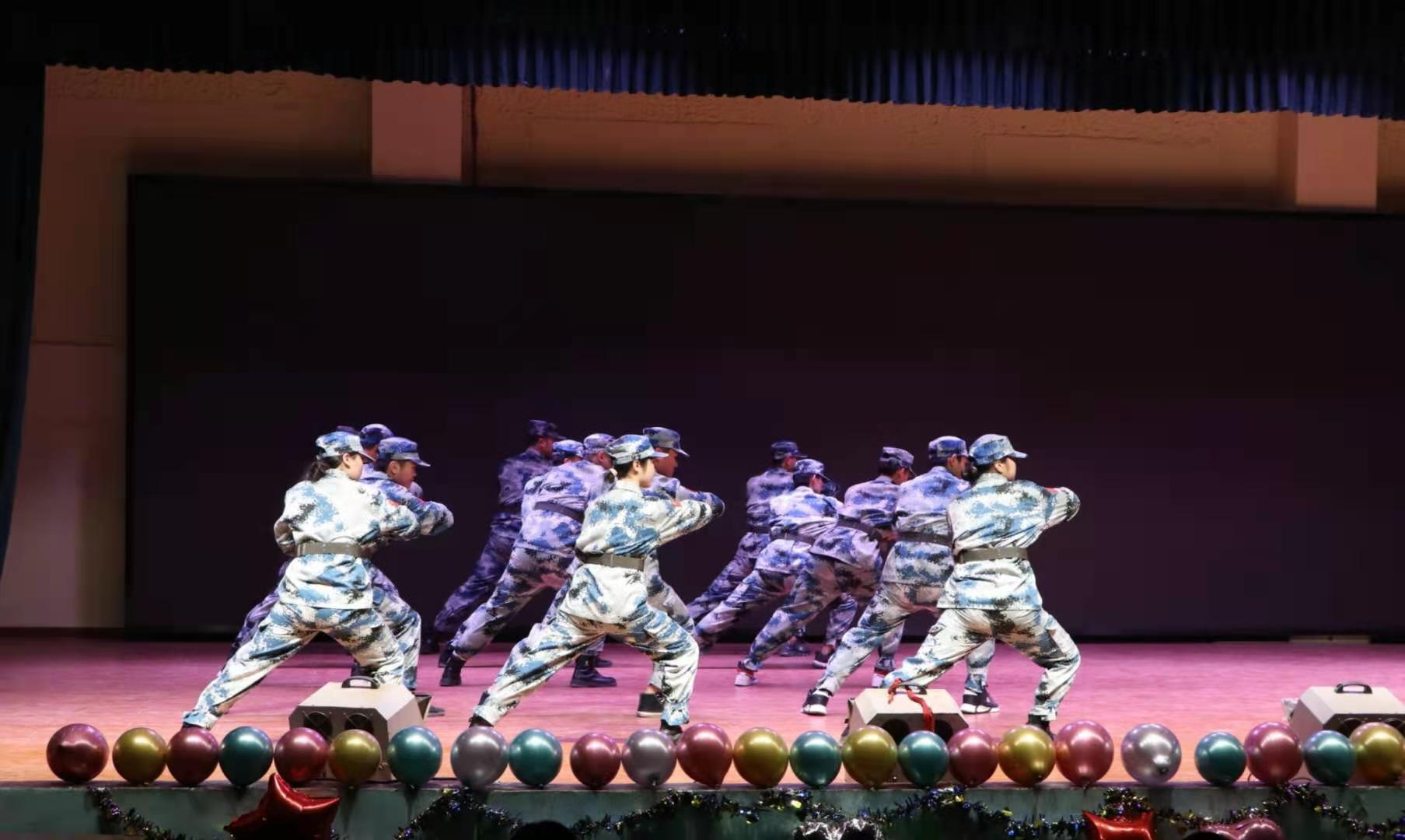 晚会共包括十三个节目,随着国歌的响起,晚会在国旗的映照下拉开帷幕,军拳表演、独唱、相声给观众带来了不同凡响的体验,炫舞社的舞蹈串烧为观众呈现了丰富的视觉盛宴,中场环节抢凳子的游戏使全场欢声笑语,使晚会更加生动精彩,最后情景剧《同桌的你》将学生们的日常学习生活充分的展现出来,引起了师生的强烈共鸣,将晚会推向了高潮。最终晚会在师生共同的欢声笑语中圆满结束。