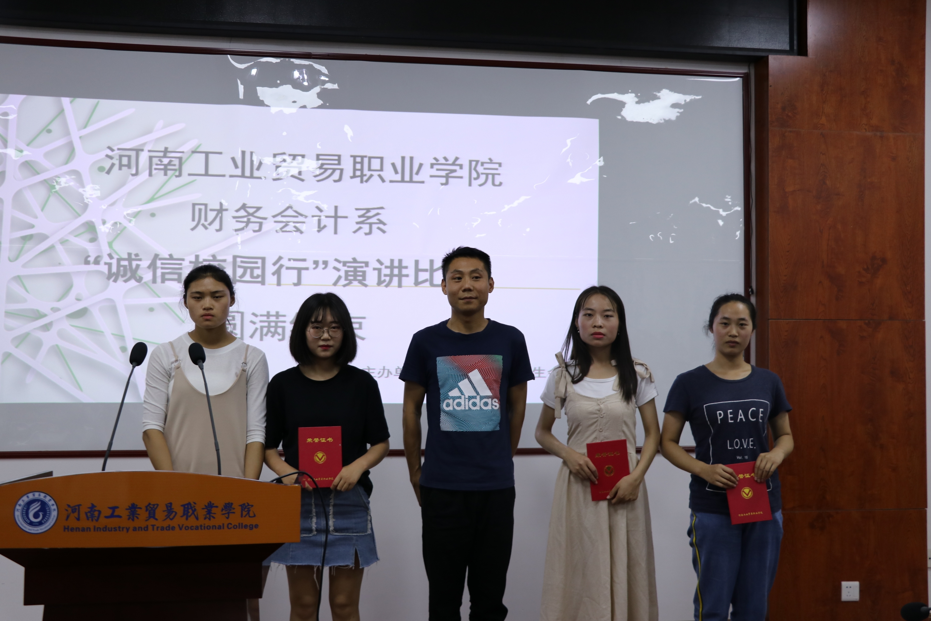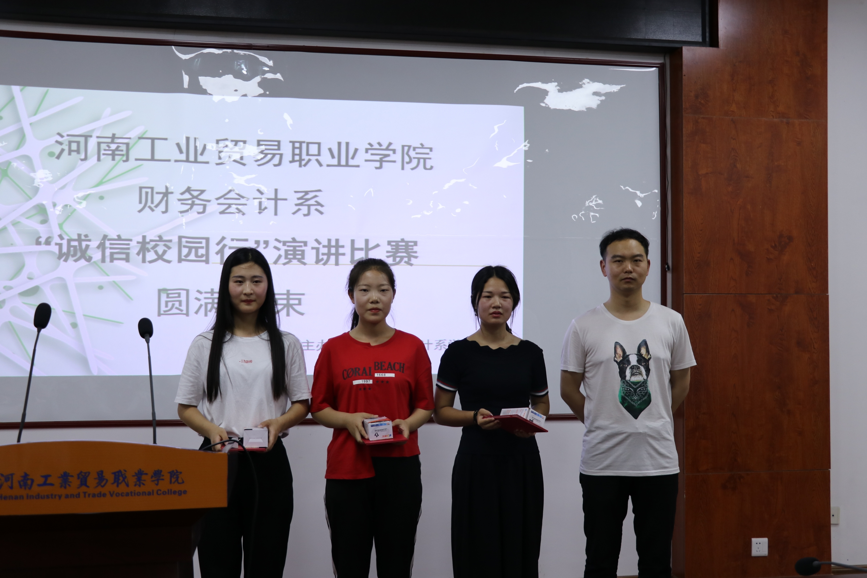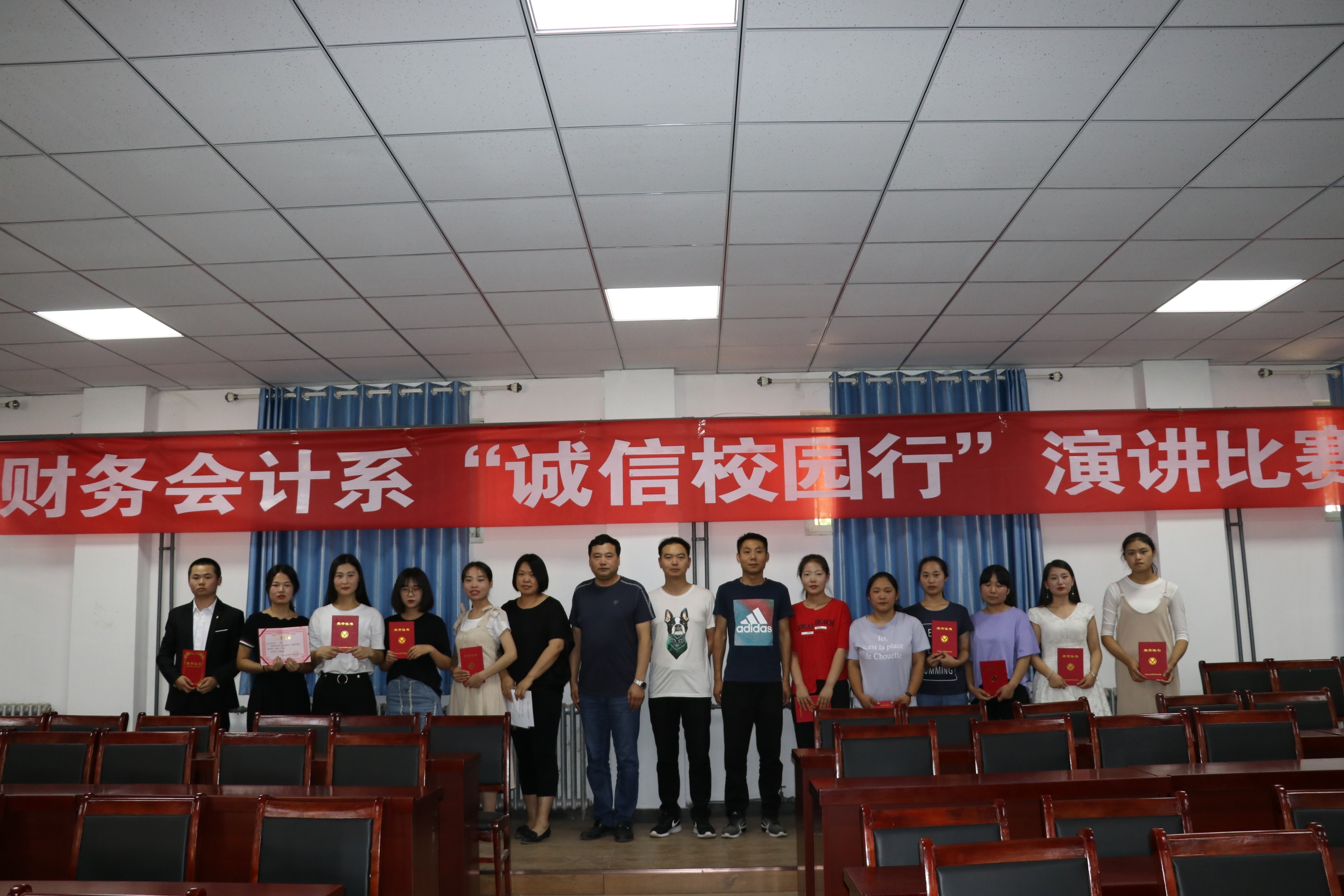 本次“诚信校园行”演讲比赛不仅让学生充分展现了自己,也让活动更加充满激情。同时强化我系学生的诚信自律意识树立正确的诚信观念和意识,营造诚信守信的校园氛围。此次比赛也展示出新时代大学生的蓬勃朝气和竞技热情,给每个同学施展自我的机会,争做新世纪青年。