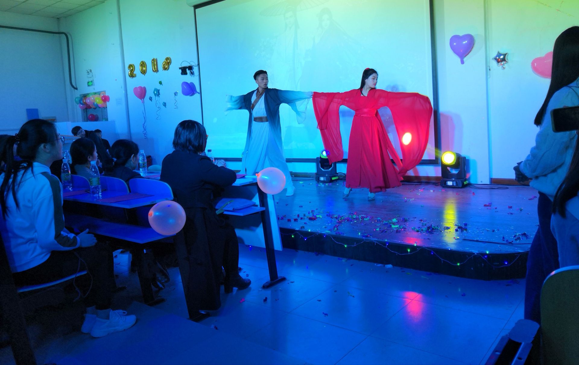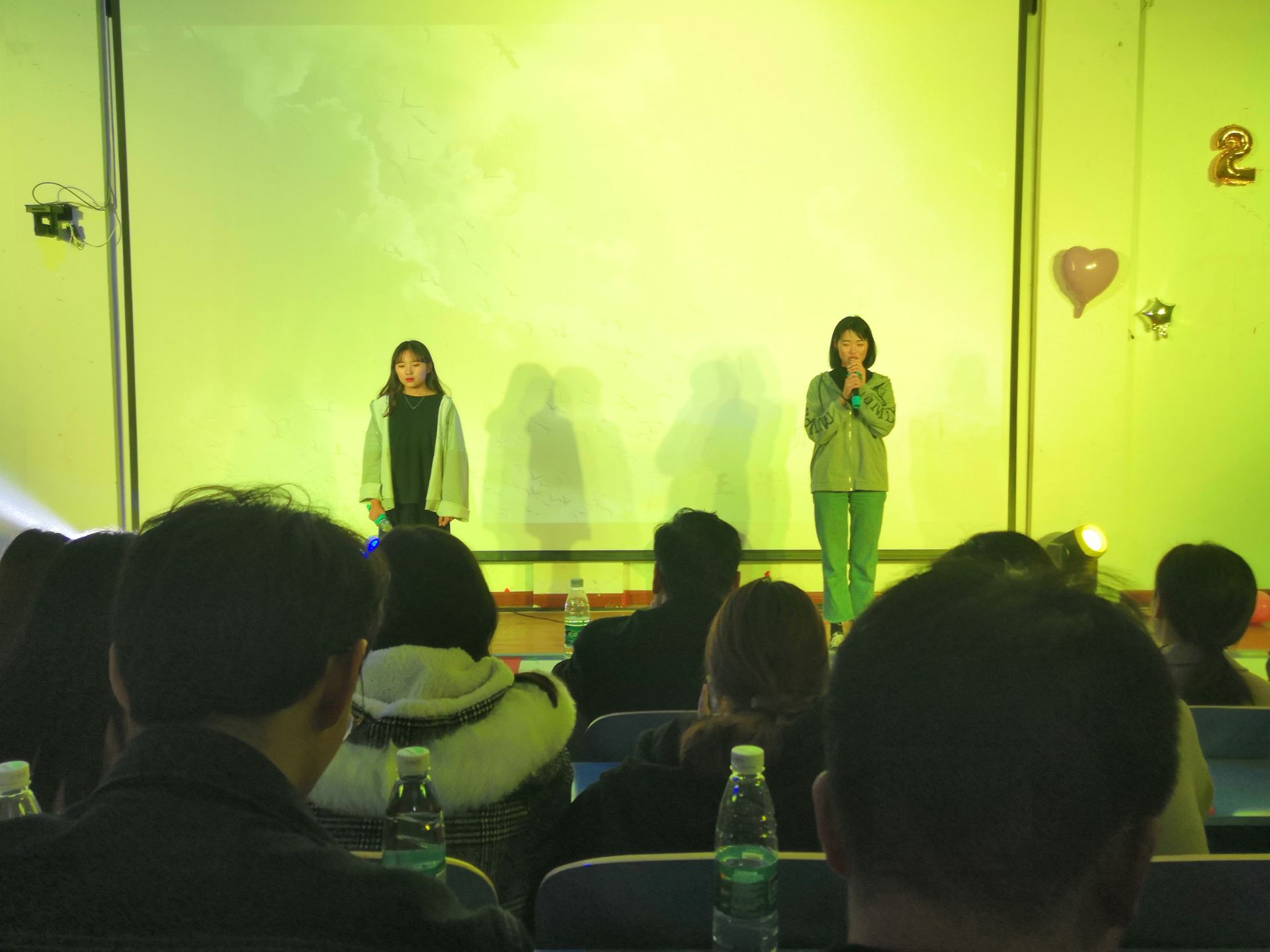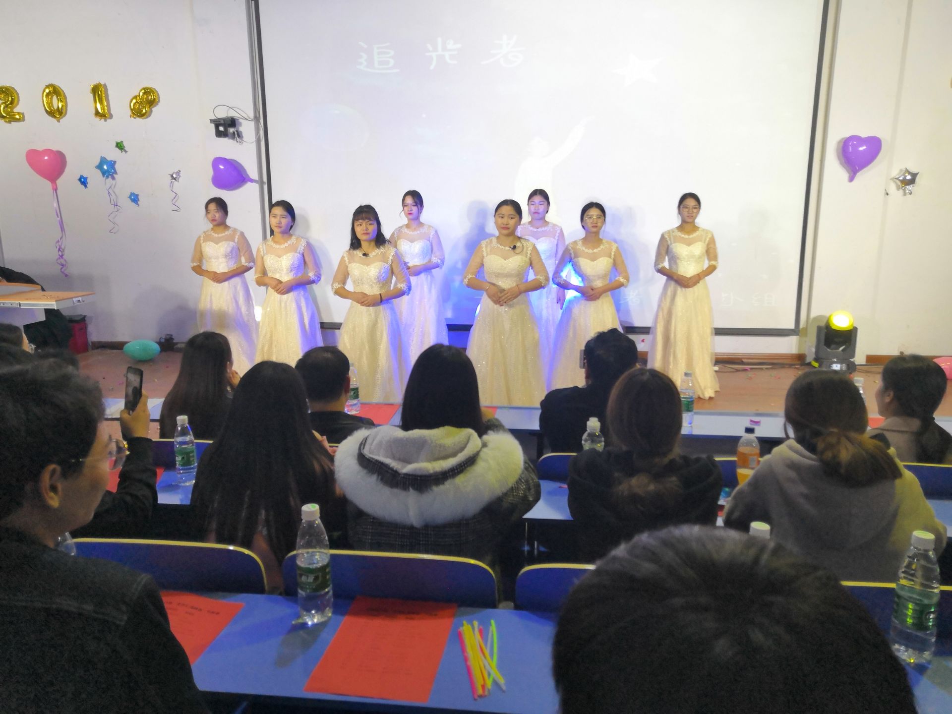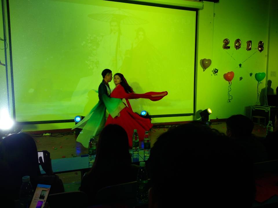 校园吉他社的一首《夜空中最亮的星》激情澎湃正,活力四射。为17届新生致以衷心的祝贺和热烈的欢迎。歌唱、小品、舞蹈、相声、吉他表演等一一呈现在观众的眼前。其中一支《舞蹈串烧》,使全场的气氛达到了高潮。中场游戏环节,抢凳子,你猜我画等游戏和现场同学互动,青年志愿者组织表演的《追光者》手语更是得到了同学们的欢呼。最后在一首朗诵《厉害了我的国》晚会完美落幕。