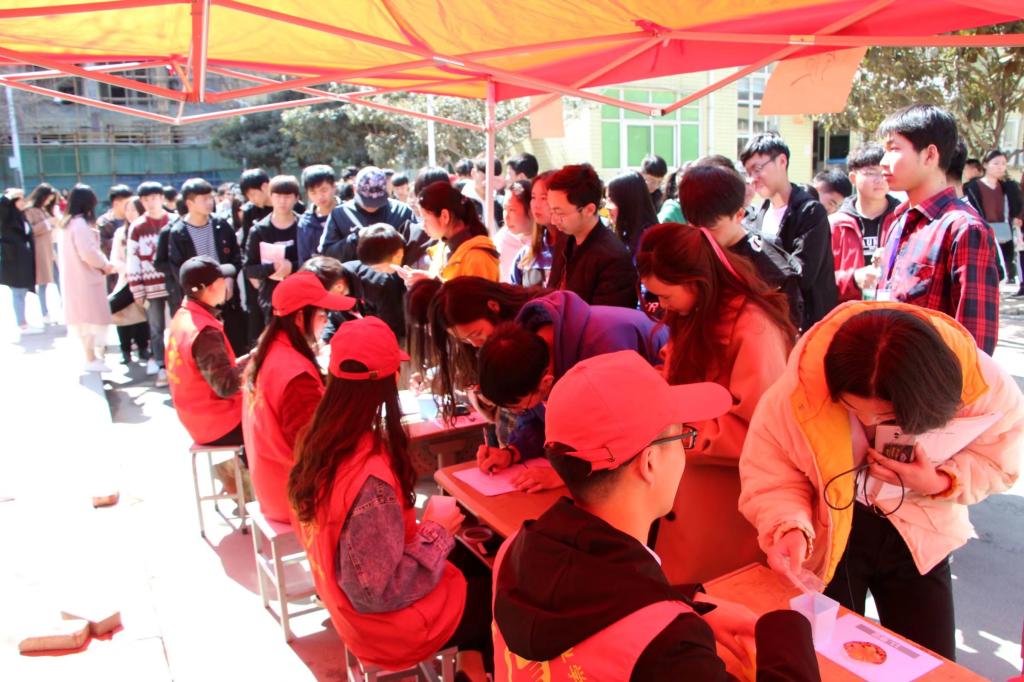 豫工贸青年志愿者组织于3月12日植树节当天在西餐厅门口举行绿植领养活动,我系志愿者积极参加,活动从上午11点50持续到下午1点30。