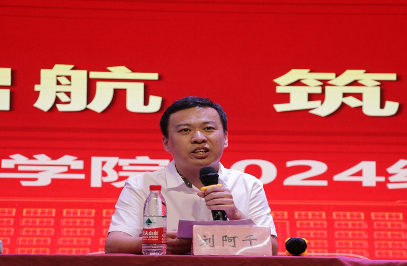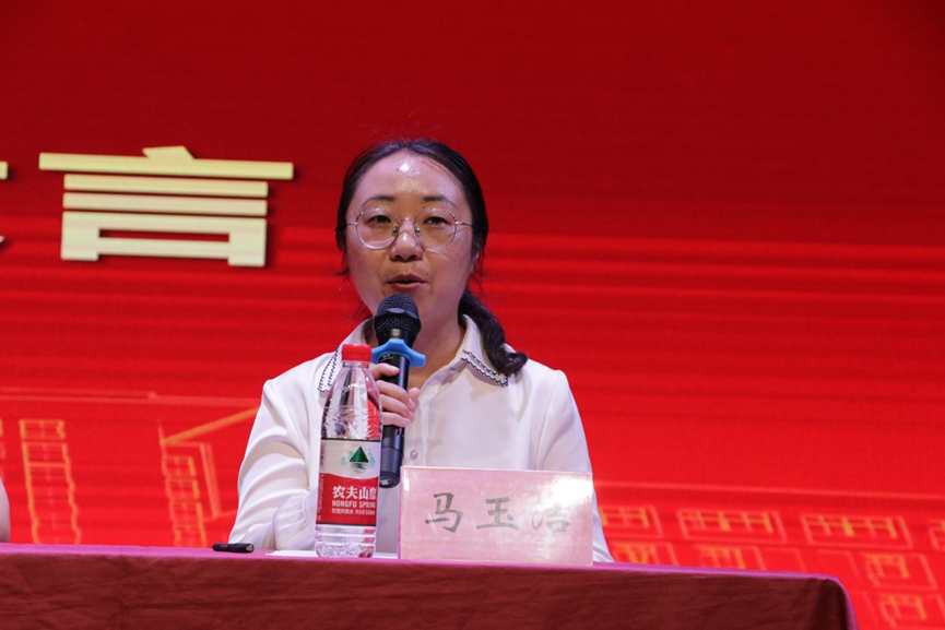 教师代表马玉洁老师对同学们的到来表示热烈欢迎,她鼓励新生们要坚守初心、勇于探索,找到自己的兴趣和目标。同时希望同学们能够自立自强、团结协作,在大学生活中全面成长成才。