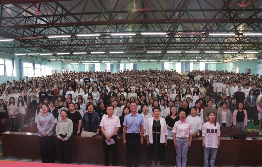 典礼伊始,全体师生起立,国歌开始奏响,所有人齐声高唱,唱出对祖国的热爱,全场响亮的歌声代表着每位同学对未来的信心和期盼。