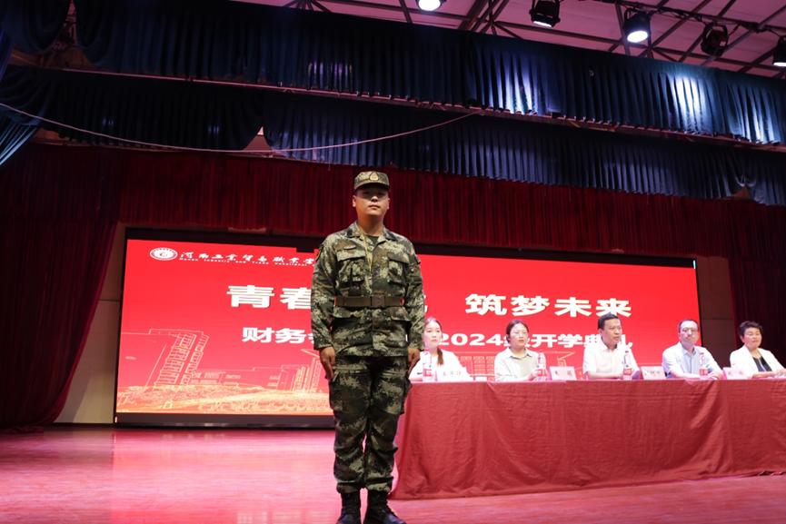 典礼最后,由我校优秀毕业生何逸辉教官带领全场师生高唱歌曲《团结就是力量》,在庄严而神圣的歌声中,财务会计学院2024级新生开学典礼圆满落幕。
