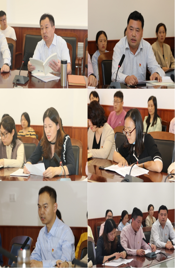 接下来教师党员代表徐琨、赵连灯、奚正艳结合自身的教学工作分别进行发言。徐琨老师表示,教师这一工作,对个人来说是一种普通职业,但对于国家和民族的未来而言,是“三尺讲台系国运、一生秉烛铸民魂”的宏大事业,甘守三尺讲台,在教学一线工作,是个人的职业选择,更是一种担当;赵连灯老师结合学习主题从甘当人梯教书育人、学为人师行为示范、扎根教育担当作为三个方面谈了自己的认识与体会;奚正艳老师结合自己的工作经验,从好老师需要有“爱”、好老师需要“才”等方面谈了对好老师的理解,作为教师,心中要有国家、有民族,虽然是普通的老师,但我们可以在平凡岗位上做出自己的贡献,去培养学生的社会责任感和民族自豪感。