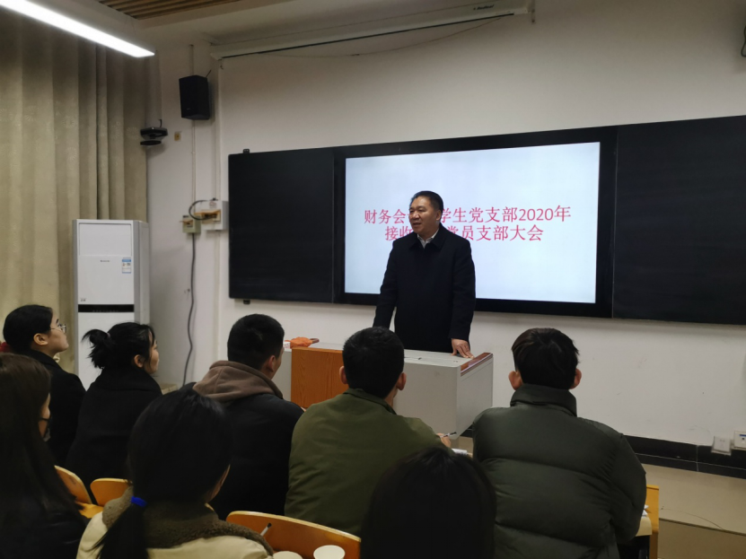 12月8日下午,学校党委书记刘合行教授在2号教学楼2106教室与财务会计学院新发展预备党员进行集体谈话。谈话会由财务会计学院院长谢桦教授主持,财务会计学院学生党支部书记张现振及学生党支部全体党员参加会议。