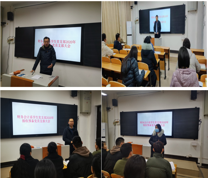 刘书记向35名新发展预备党员表示祝贺,他谈到,加入中国共产党,特别是在大学期间,是你们政治生命中的一件大事,一件非常光荣的事情,一个新的标志,表明你们成为进步、先进的一分子。他谈到,作为党委书记,作为财务会计学院教工党支部的一名普通党员,与新发展预备党员进行集体谈话,既是发展党员程序安排也是要求。他勉励大家,要思考为什么入党,时刻不忘入党初心使命,牢记为人民服务宗旨,为中国人民谋幸福,为中华民族谋复兴,站在新的历史起点上,时代新人要以民族复兴为己任。