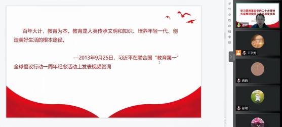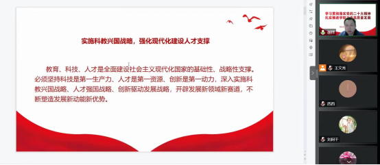 谢桦在领学时指出,党的十八大以来,以习近平同志为核心的党中央对新时代党和国家事业发展作出科学完整的战略部署,党的二十大报告首次把教育、科技、人才进行“三位一体”统筹安排、一体部署,并摆放在论述“高质量发展是全面建设社会主义现代化国家的首要任务”(即“高质量发展”)之后的突出位置,极具战略指导意义和重大深远影响。
