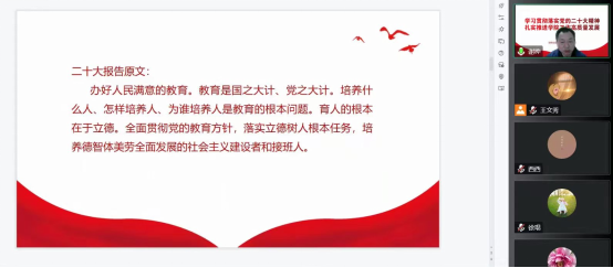 为深入学习贯彻落实党的二十大精神,根据中共河南工业贸易职业学院委员会关于印发《河南工业贸易职业学院学习宣传贯彻党的二十大精神工作方案》(豫工贸党〔2022〕109号)的通知要求,12月27日下午,财务会计学院党总支以“学习贯彻落实党的二十大精神扎实推进学院工作高质量发展”为主题,开展了主题党日活动。本次活动主要由财务会计学院党总支副书记谢桦组织领学党的二十大报告中的第五部分“实施科教兴国战略,强化现代化建设人才支撑”,财务会计学院全体党员及预备党员参加了此次活动。