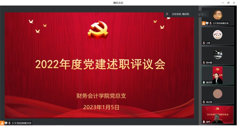 为深入学习宣传贯彻党的二十大精神,按照《中共河南省委高校工委关于印发2022年度高校党组织书记抓基层党建述职评议考核工作方案的通知》(豫高发〔2022〕160号)和《河南工业贸易职业学院2022年度党组织书记抓基层党建述职评议考核工作方案》的要求,1月5日下午,财务会计学院党总支召开2022年度基层党组织书记抓党建述职评议考核工作会议。会议由财务会计学院党总支副书记雷启英主持,财务会计学院党总支全体党员教师和部分群众代表参加。