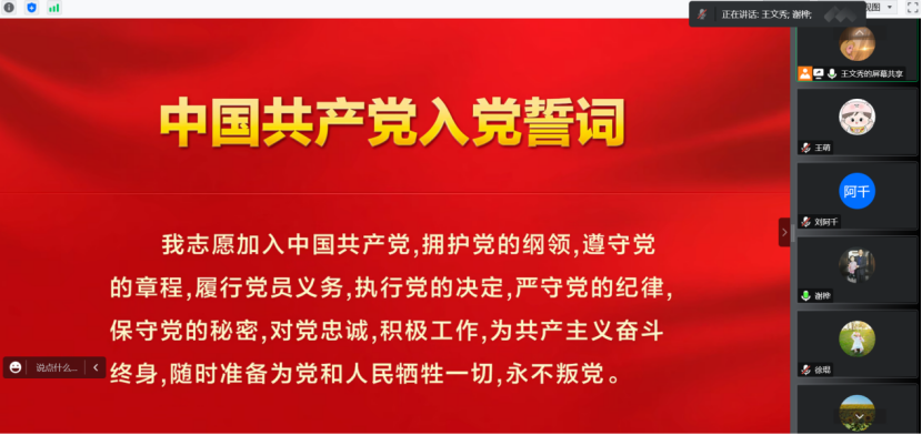 最后,由支部书记谢桦带领新老党员共同宣誓及重温入党誓词,全体党员老师表示,今后要进一步锤炼政治品格,不忘初心、牢记使命,立足本职岗位,时刻以党员标准严格要求自己,充分发挥共产党员的先锋模范作用,用实际行动为党的事业蓬勃发展贡献力量。
