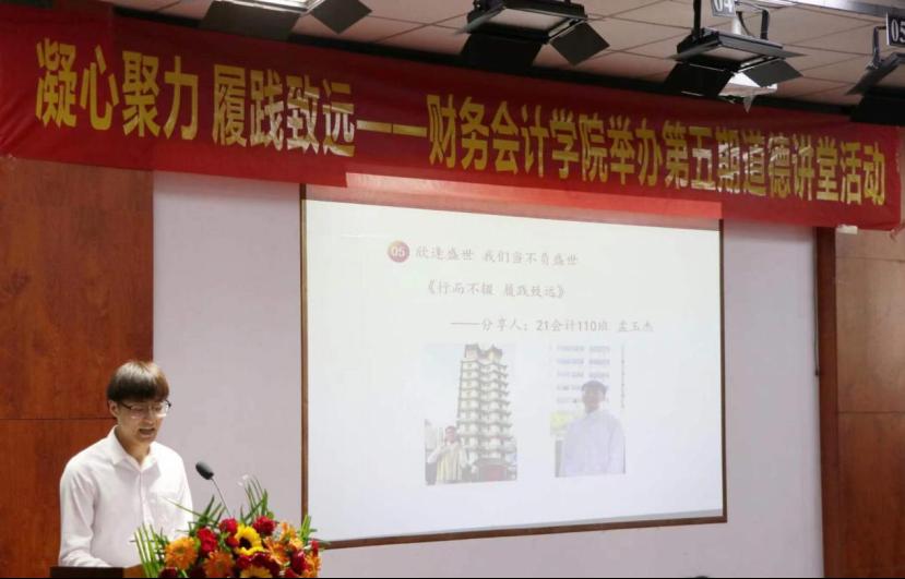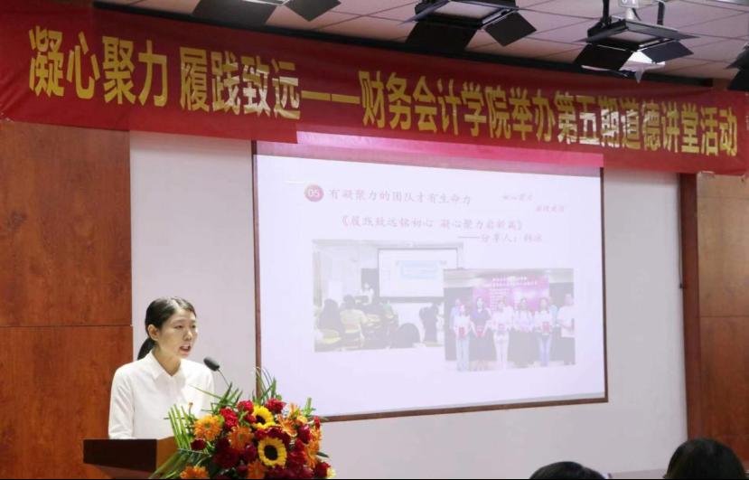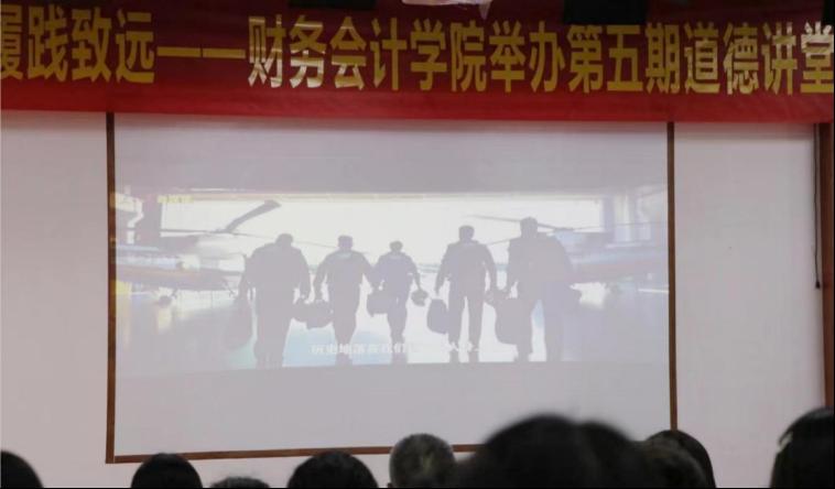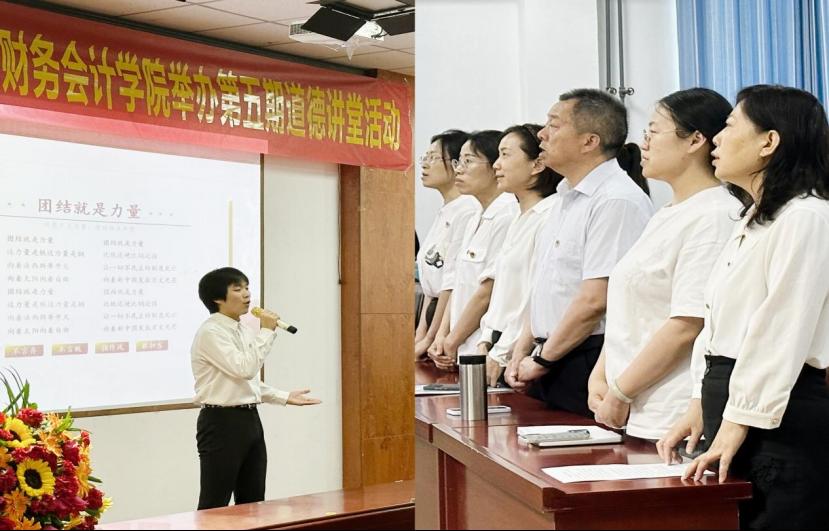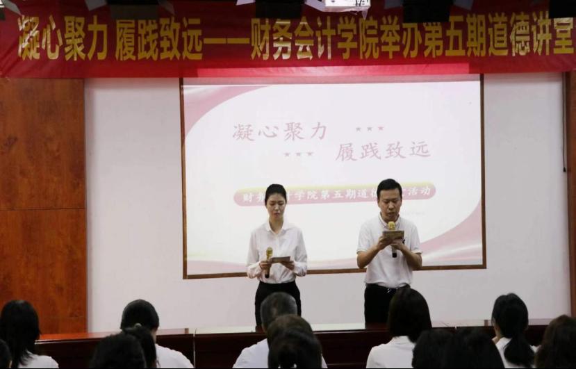此次道德讲堂围绕同声共振,团结财会;核心价值,德育财会;志存高远,筑梦财会;奋勇拼搏,奉献财会;辉煌征程,展望财会;宣誓理想,建设财会六个环节依次开展。