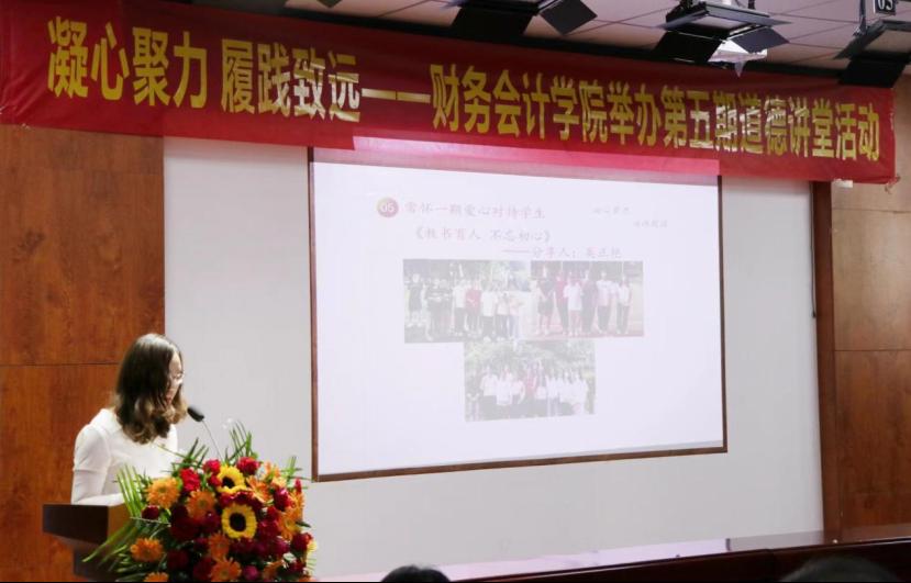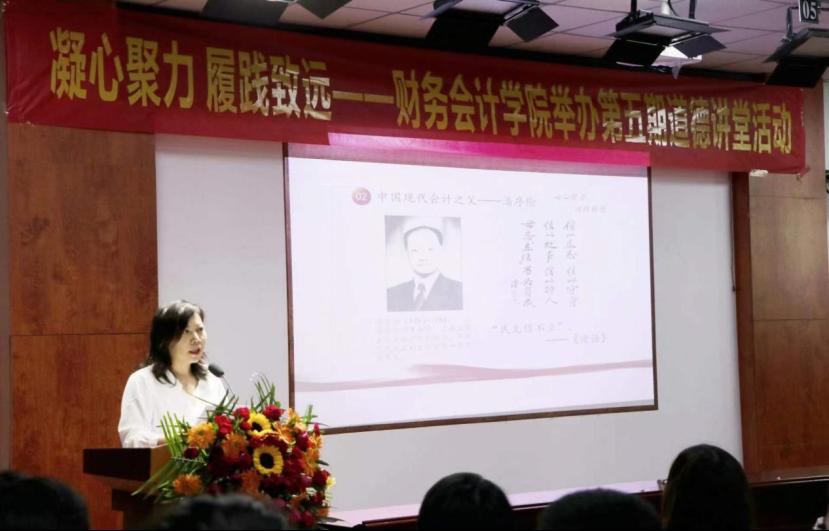 在“核心价值,德育财会”环节,张凌云老师讲述了“现代会计之父”潘序伦的故事,全体师生共同牢记会计先驱传承下来“民无信不立”的核心价值观,自觉遵守职业道德,践行诚信为本的职业操守。