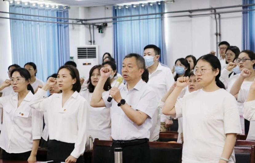 最后,财务会计学院院长、教职工党支部书记谢桦带领全体教师庄严宣誓,重温教师誓言,激励全体教师牢记立德树人根本任务,以坚定信念赓续育人使命。