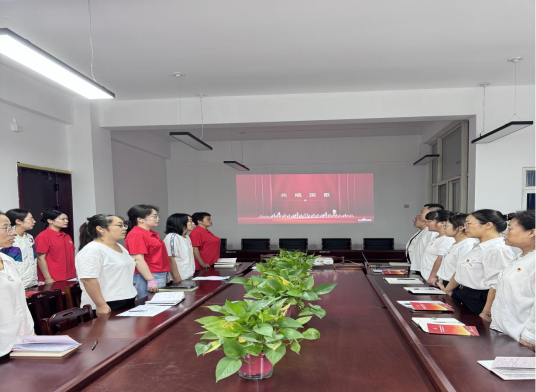 本次活动在雄壮的国歌声中拉开帷幕。全体党员教师肃立,伴着雄壮的音乐齐声高唱国歌。歌声中,饱含着每位党员教师对祖国的无限热爱与崇高敬意,展现着新时代中国共产党员坚定理想信念的新风貌。