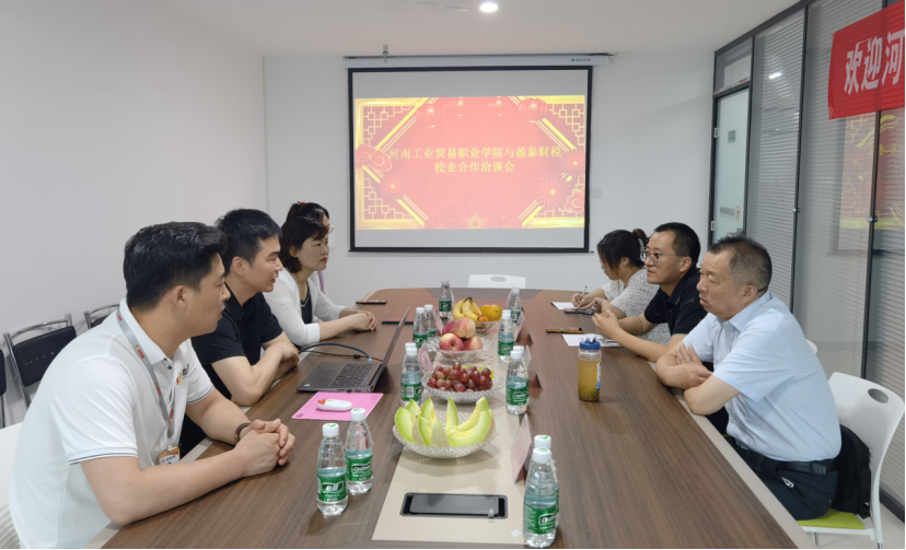 盈泰财税集团总经理王浩及公司骨干对谢桦一行的到来表示欢迎,首先引领访问人员参观公司的核心办公区,初步了解盈泰财税集团的主要业务和企业文化。在接下来的校企合作洽谈会中,谢桦院长首先介绍了学校发展历史、专业建设、人才培养等方面取得的成果。他指出,我院一直注重培养服务于产业的高质量人才,希望以此次“访企拓岗”活动为契机,进一步深化双方合作交流的深度和广度,为学院提高人才培养质量、提升就业质量拓宽路径。