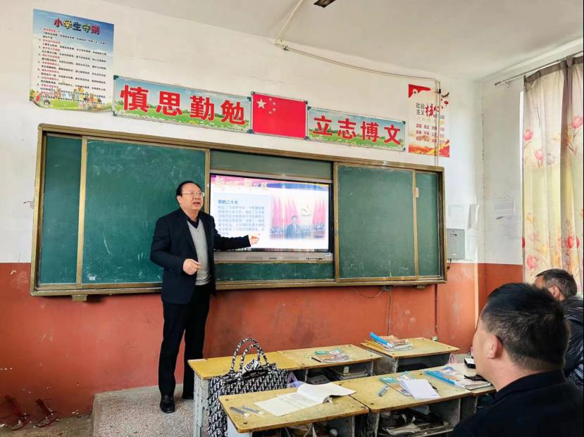 马克思主义学院王乾厚教授以《立志复兴伟业 踔厉奋发前行》为题,在逻岗镇吾元村小学对基层村干部、学校思政课教师开展习近平新时代中国特色社会主义思想和党的二十大精神培训,他围绕国际国内时代大背景,从永载史册的伟大变革、引领复兴的宏伟蓝图、笃行不怠的战略定力等三个方面,用最新的政策理论解读阐述了中华民族伟大复兴号巨轮定能乘风破浪、扬帆远航。