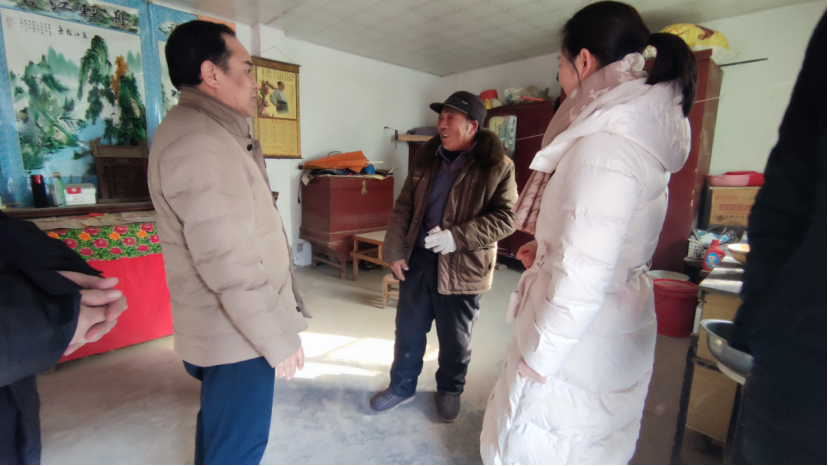 慰问组一行走访了阳驿乡玉皇庙村突发严重困难监测户张新超,五十年以上党龄老党员、退伍老军人王永海和退伍村干部李广印等。每走进一家农户,王修法都带领慰问组亲切询问并查看他们的取暖、物资储备及身体生活情况,同时叮嘱他们路滑少出门、防范一氧化碳中毒、注意电热毯电暖扇等用电安全:“天太冷,制暖设施该用用,不要心疼电费不舍得用;尽量减少外出,冬天一定要注意好身体;烧炉子要注意开窗通风,安全意识要强……”和乡亲们拉家常中,传递了工贸的真情和温暖。