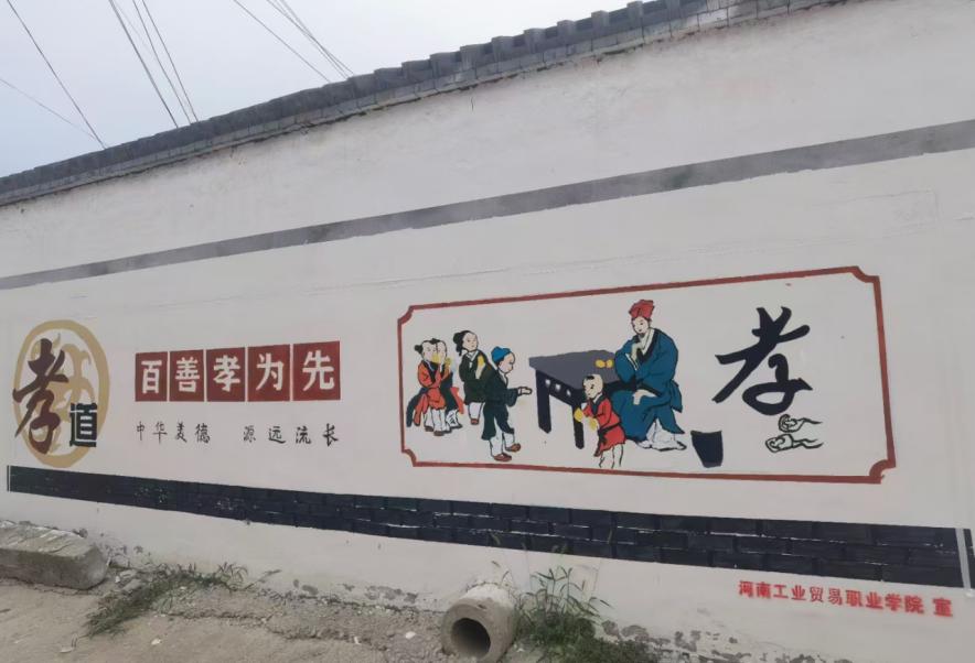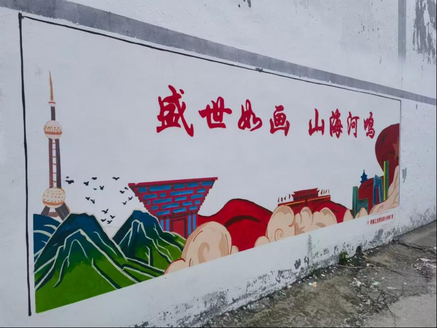 8月下旬的王仪宾村,时令出伏伏未走,热浪奔腾荡碧空,师生们战酷暑斗蚊虫,在汗水淋漓中有条不紊地设计构图、调配颜色、描边勾线、绘图上色,共绘制了32副墙面约300平米作品,一幅幅构图精美、积极向上的新画面覆盖了村落里斑驳的老砖墙,形成一面面靓丽的特色文化墙,为王仪宾村增添了别样色彩。