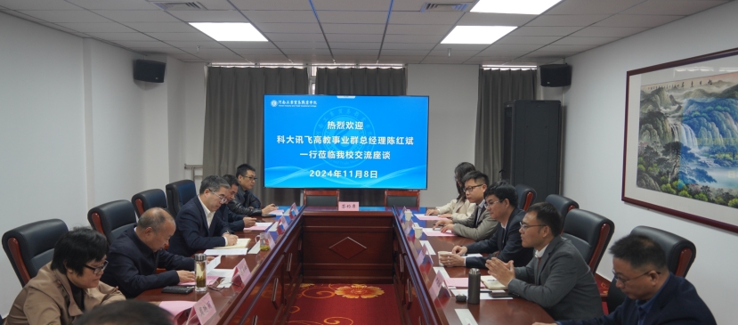 11月8日,我校与科大讯飞股份有限公司战略合作协议签约仪式在龙湖校区图书馆第二会议室举行。校党委书记李国锋,党委副书记、校长曹利强,科大讯飞高教事业群总经理陈红斌出席签约仪式。仪式由副校长周艳丽主持。