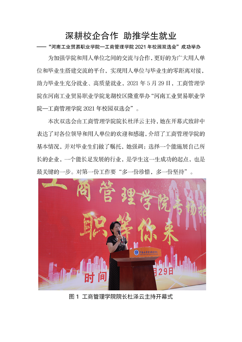 深耕校企合作 助推学生就业 ——“河南工业贸易职业学院—工商管理学院 2021 年校园双选会”成功举办